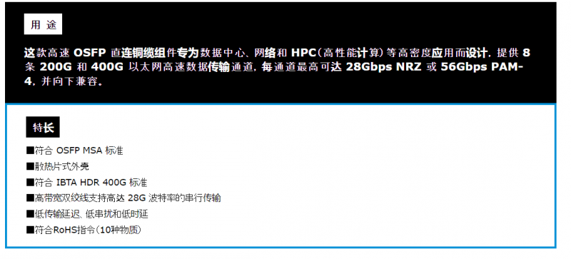 hewtech 电缆OSFP 400G DAC系列